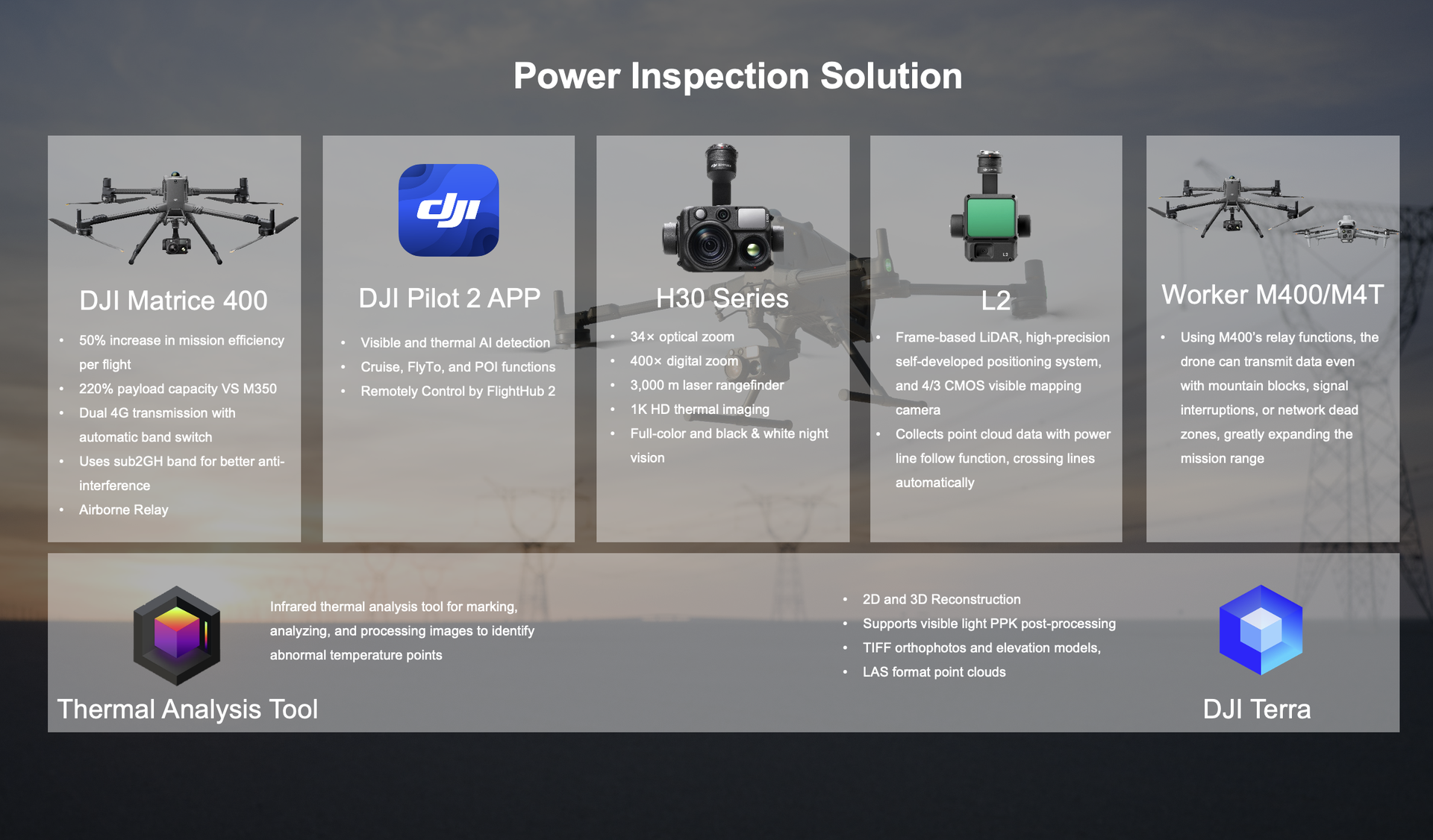 Met functies zoals Smart Detection, zichtbare en thermische beeldvorming, AR-projectie, starten en landen vanaf schepen, en geavanceerde automatisering, is de Matrice 400 uitermate geschikt voor veeleisende missies in noodhulpverlening, inspecties van elektriciteitsnetten, cartografie, en de bouw-, architectuur- en ingenieurssector (AEC).